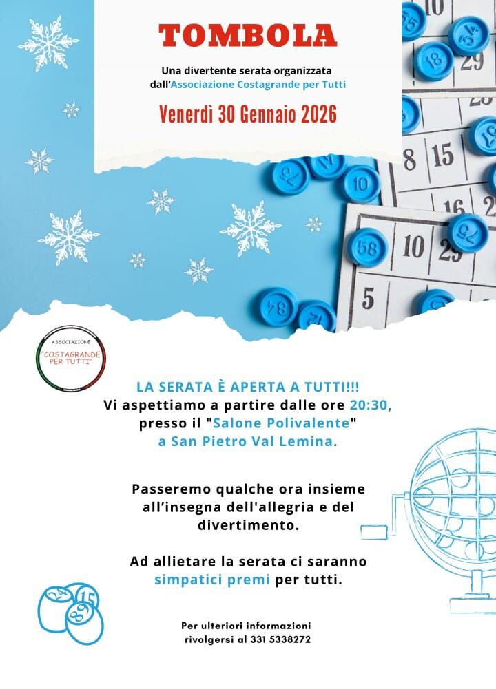 Il 30/01/2026 di è disputato l'evento della tombola della associazione Costagrande Per Tutti.